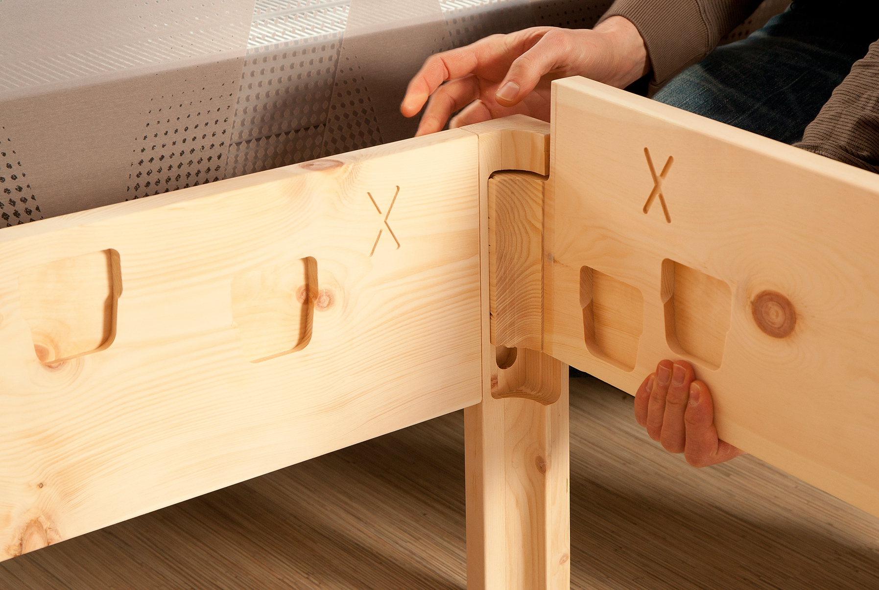 Die metallfreien Verbindungen der Bettelemente und Auflageleisten haben wir uns beim Patentamt schützen lassen.