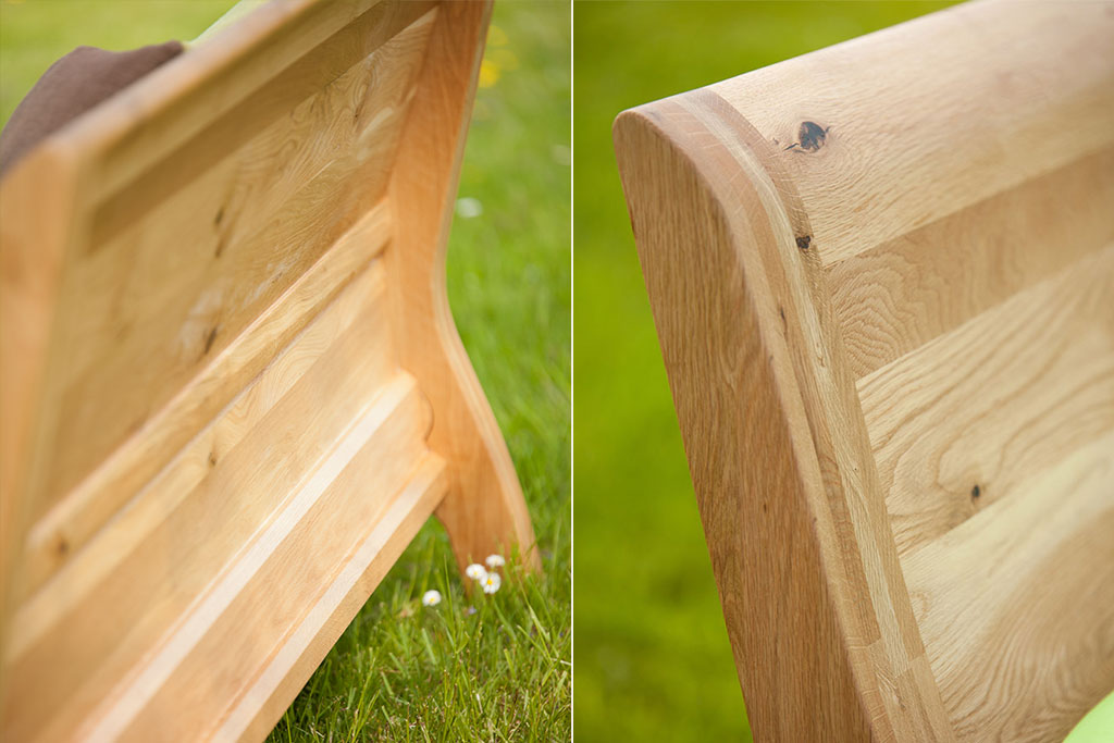 Kunststoff und Metall kommen beim Zusammenbau nie zum Einsatz. Der in der Produktion verwendete Holzleim ist frei von Formaldehyd. Und die Oberfläche veredeln wir mit einem biologischen Hartwachsöl. Die Holzmaserung dankt es mit einem seidigen Glanz und einer wunderbaren Struktur.
