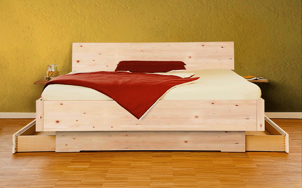 Schwebebett Zirbe FRI - Massivholzbett handwerklich gefertigt